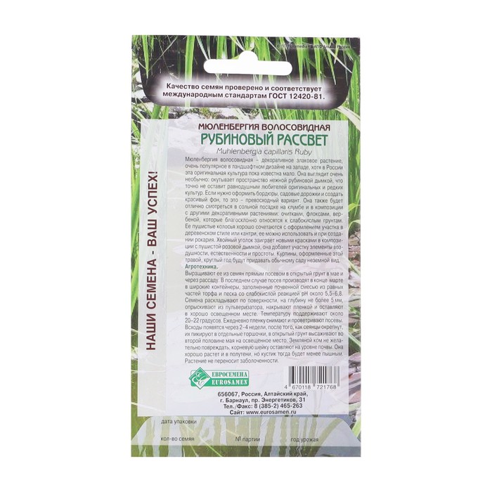 Семена Мюленбергия волосовидная «Рубиновый Рассвет», многолетник, декоративные злаки, 5 шт. — Характеристики