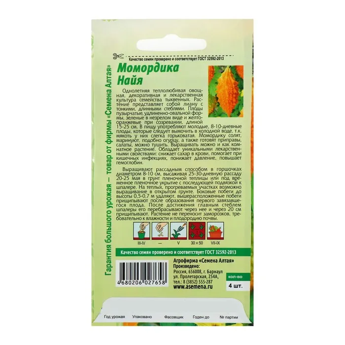 Обладает уникальными лекарственными свойствами: снижает сахар в крови, помогает при кишечных инфекциях, понижает давление, повышает гемоглобин. Выращивают рассадным способом в горшочках диаметром 8-10 см, высаживая 25-30-дневную рассаду 20-25 мая в грунт пленочной теплицы или под временное пленочное укрытие с последующей подвязкой к шпалере. На теплых, прогреваемых участках возможно выращивание в открытом грунте.