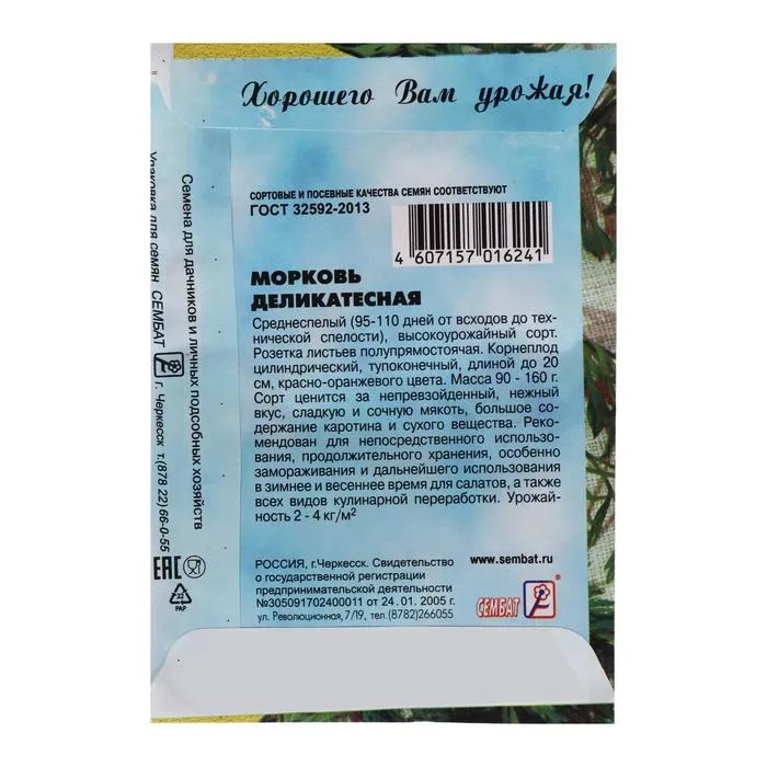 Семена Морковь "Деликатесная", 2 г — Характеристики