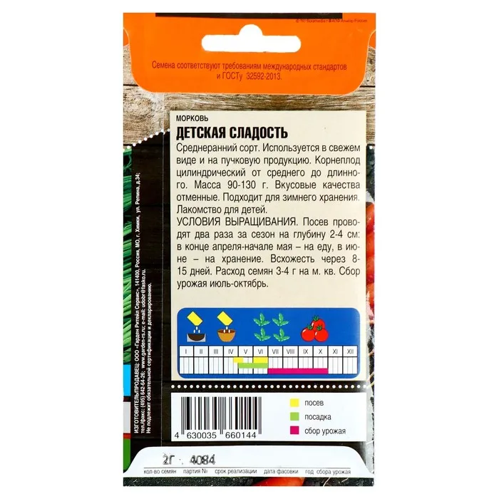 Семена Морковь "Детская сладость", 2 г — Характеристики