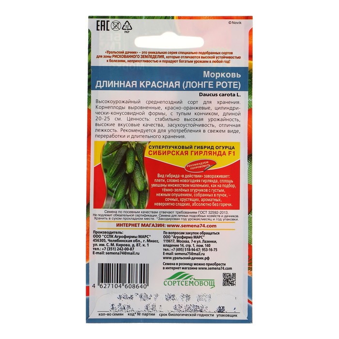 Семена Морковь "Длинная Красная (Лонге Роте)" сочная, до 180 г, для хранения 1,5 г — Характеристики