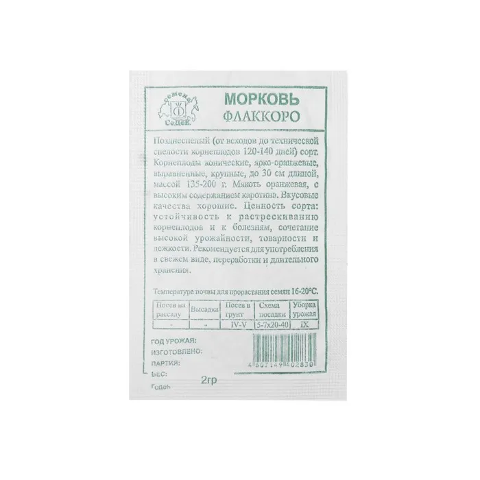 Семена Морковь "Флакоро "б/п 2 г — Характеристики