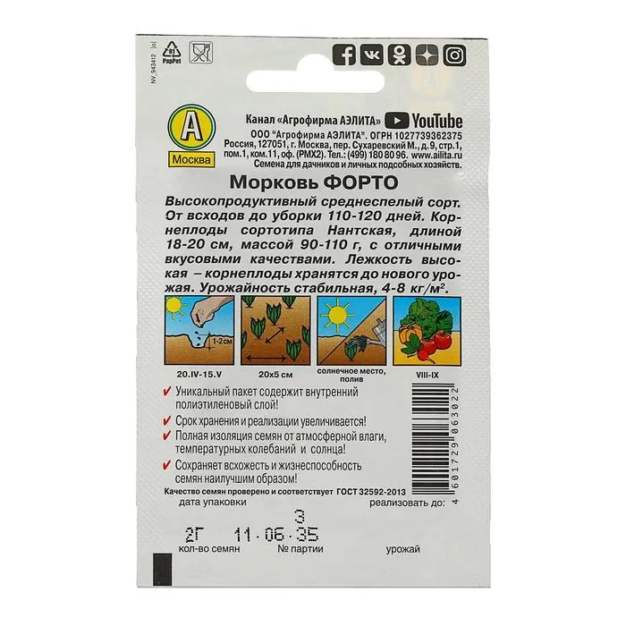 Семена Морковь "Форто", 2 г — Характеристики