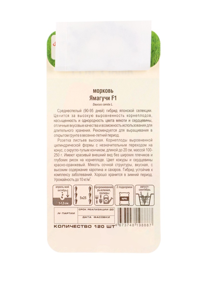 Семена Морковь Ямагучи F1 120 шт. — Характеристики