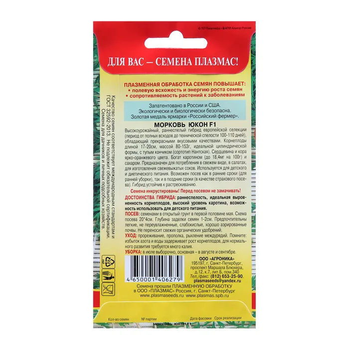 Раннеспелый (100-110 дн. от всх.) гибрид голландской селекции.Корнеплоды цилиндрические, тупоконечные, длиной 18-20 см, массой 80-160 г, с оранжевой корой и сердцевиной превосходного вкуса. Для свежего потребления и недлительного хранения.Посев: в конце апреля-начале мая в увлажненные бороздки на глубину 1-1,5 см на расстояние 3-4 см друг от друга. Для получения более ранней продукции грядку предварительно накрывают нетканым укрывным материалом. Почва должна быть легкой по механическому составу, с глубоким пахотным слоем. Перед посевом не замачивать!Уход: прополки, рыхления междурядий (2-4 за сезон), поливы в сухую погоду, защита от вредителей. При условии правильного посева в прореживании не нуждается. Свежие органические удобрения не вносить.Сбор урожая: до наступления осенних заморозков в сухую погоду.
