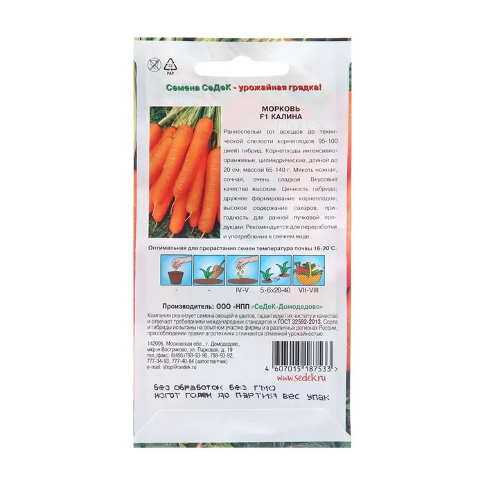 Семена Морковь "Калина F1", 2 г — Характеристики