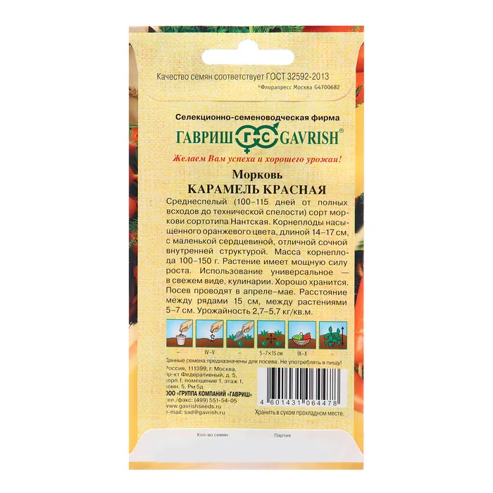 Семена Морковь "Карамель", красная, 150 шт — Характеристики