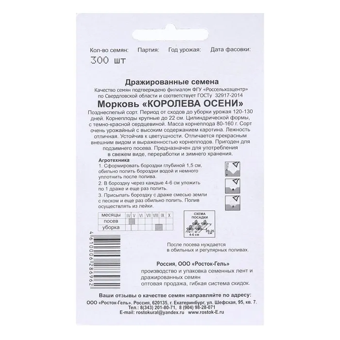 Семена Морковь "КОРОЛЕВА ОСЕНИ" простое драже, 300 шт — Характеристики