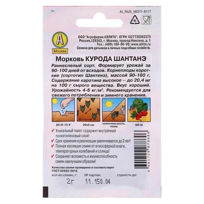 Семена Морковь «Курода шантанэ», 2 г, «Аэлита» — Характеристики