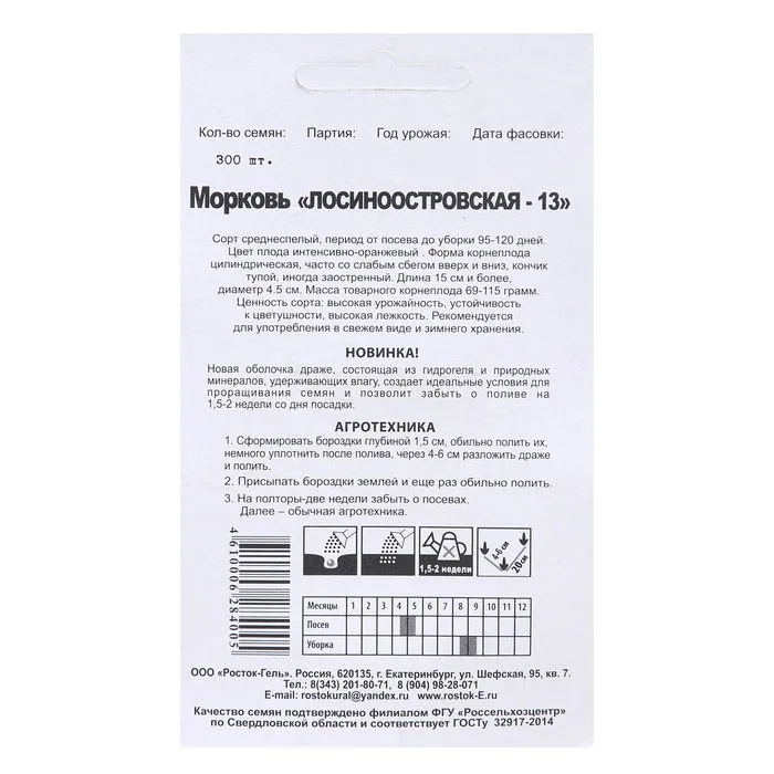 Морковь лучше растет на легких суглинистых и супесчаных почвах. Лучшими предшественниками считаются картофель, лук, томаты, огурцы, бобовые. Весной перед посевом в почву вносят комплексное минеральное удобрение, обеспечивающее необходимое питание овощным культурам в период всей вегетации. Посев в конце апреля в бороздки на глубину 2-3 см. Расстояние между рядами 18-20 см. Семена в драже! При попадании влаги на гранулу оболочка рассыпается. Расстояние между драже в ряду 4-6 см. Всходы не прореживают. Дальнейшем уход заключается в прополке, рыхлении, поливе.