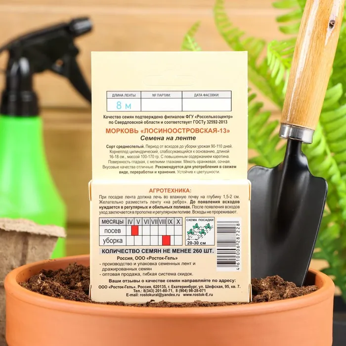 Семена Морковь "Лосиноостровская -13", Семена на ленте, 8 м, — Характеристики