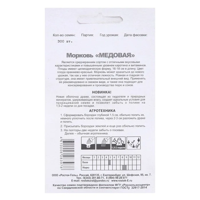 Универсальный среднепоздний сорт. От всходов до уборки 115-125 дней. Корнеплоды длинные, нантского сортотипа, массой 120-210 г. Сердцевина маленькая. Вкус сладкий. Содержание общего сахара – до 10%, каротина – до 12 мг на 100 г сырого вещества. Подходит для приготовления соков и пюре для детского питания. Сорт устойчив к черной и бактериальной пятнистости. Урожайность – 5-7 кг/м2.