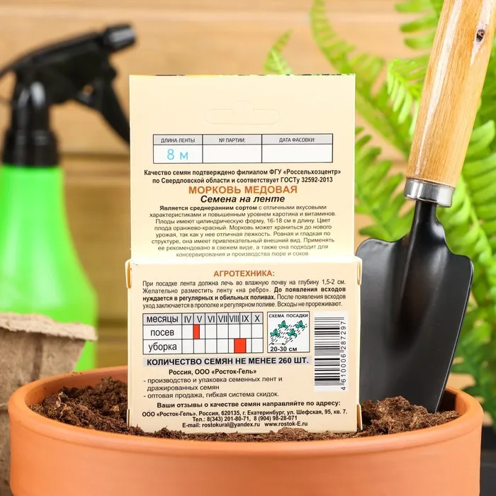 Агротехника: при посадке лента должна лечь во влажную почву на глубину 1,5-2 см Желательно разместить ленту «на ребро». До появления всходов нуждается в регулярных и обильных поливах. После появления всходов уход заключается в прополке ирегулярном поливе. Всходы не прореживают.