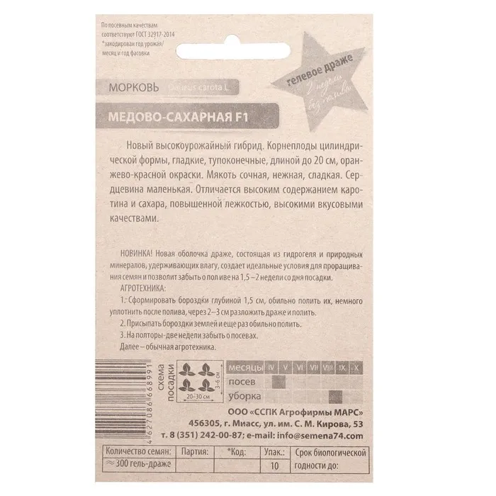 Семена Морковь "Медово Сахарная", F1, 250 шт. — Характеристики