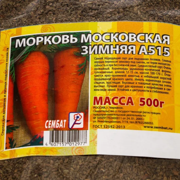 Семена Морковь "Московская зимняя А515", 500 г — Характеристики