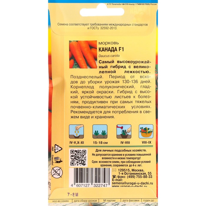 Семена Морковь на ленте «Канада», F1, 6.7 м, «УРОЖАЙ УДАЧИ» — Характеристики