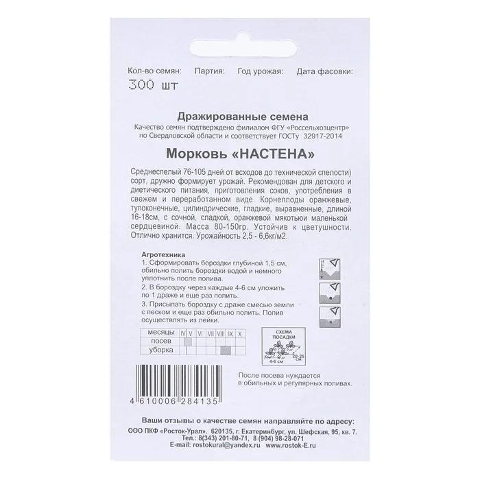 Замечательный сорт для выращивания во всех регионах страны. По срокам созревания – среднеспелый, от всходов до уборки 100-115 дней. Корнеплоды крупные, сортотипа Шантенэ, массой 150-250 г, не растрескиваются и не деформируются. Сердцевина небольшая. Мякоть плотная, сладкая, сочная и ароматная. Корнеплоды удобны в переработке, отлично хранятся до нового урожая сохраняя прекрасный вкус и замечательный внешний вид. Сорт устойчив к цветушности, к жаркой погоде и комплексу болезней культуры. Урожайность высокая – 8-9 кг/ м 2 .Посев семян в бороздки на глубину 1,5-2,0 см. До появления всходов посевы рекомендуем укрыть пленкой для сохранения оптимальной влажности почвы. С развитием первых двух пар настоящих листочков растения прореживают. Второе прореживание проводят, когда корнеплоды достигнут диаметра 1 см. Возможен подзимний посев (в конце октября – начале ноября) на глубину 3 см.