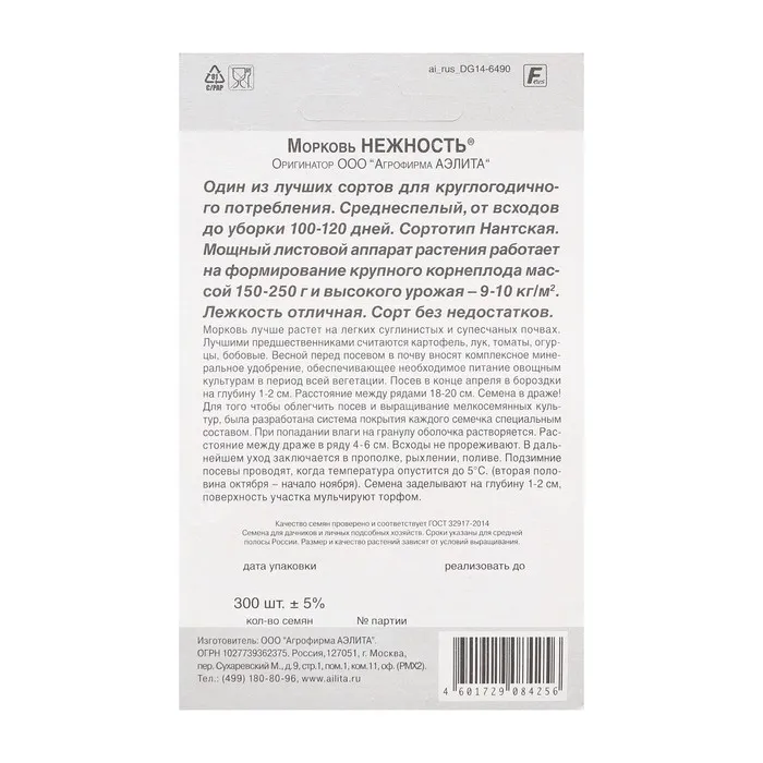 Семена Морковь "Нежность", 300 шт — Характеристики