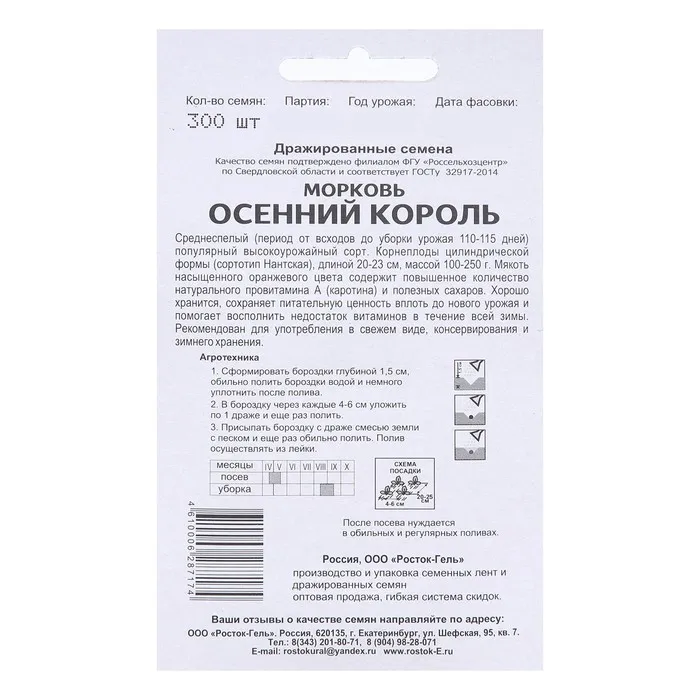 Семена Морковь "Осенний король", 300 шт. — Характеристики