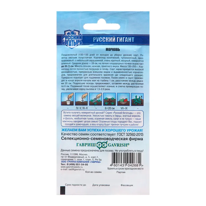 Лист длинный, темно-зеленый, среднерассеченный. Корнеплод среднего размера, конический со слегка заостренным кончиком (сортотип Шантенэ). Сердцевина и кора оранжевые. Масса 97 - 170 г. Вкусовые качества хорошие. Рекомендуется для использования в свежем виде, консервирования и зимнего хранения.