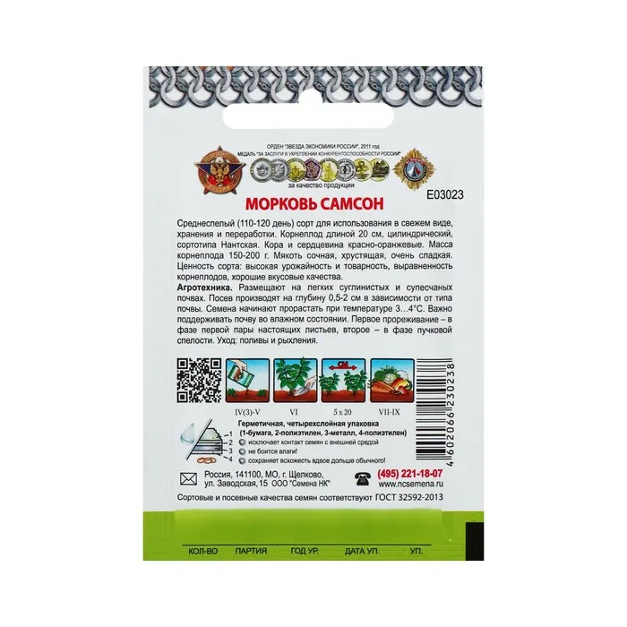 Семена Морковь "Самсон" серия Кольчуга, 1 г — Характеристики