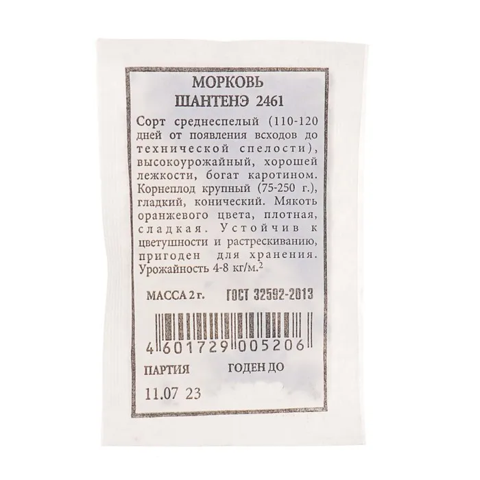 Самый популярный среднеспелый сорт (период от полных всходов до технической спелости 65-105 дней) с повышенным содержанием каротина и отличными вкусовыми качествами. Дает высокий урожай во всех регионах, особенно на тяжелых почвах. Корнеплоды длиной до 15 см, с плотной, сладкой, сочной мякотью и маленькой сердцевиной. Хорошо хранятся зимой, используются для потребления в свежем виде и переработки.