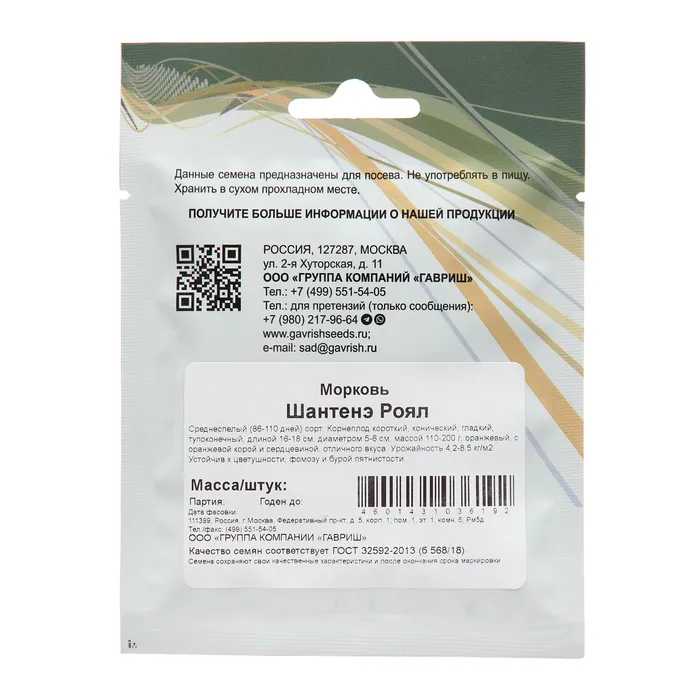 Семена Морковь "Шантенэ Роял", 25 г — Характеристики