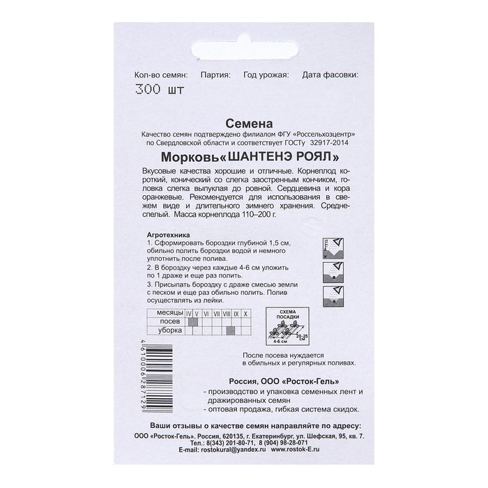 Семена Морковь «Шантенэ роял», простое драже, 300 шт., «Росток-гель» — Характеристики