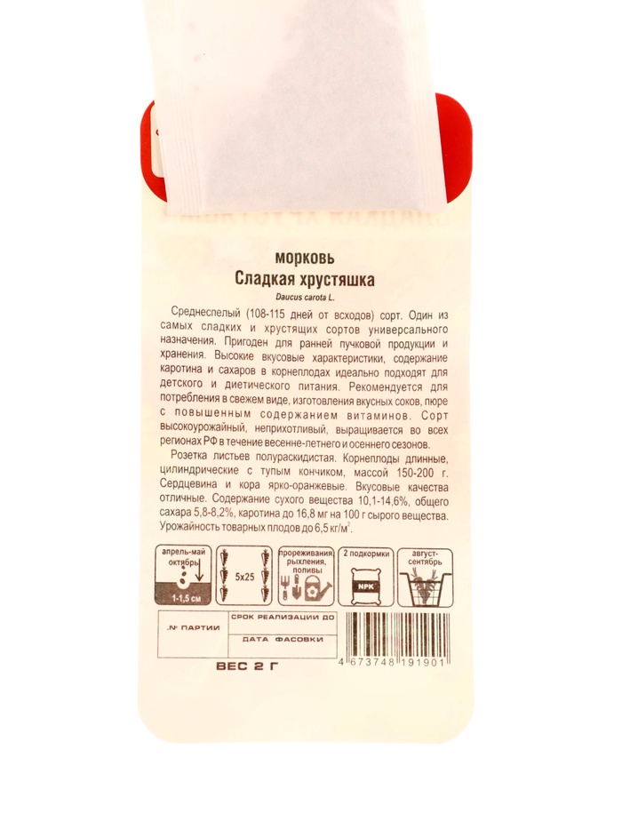 Семена Морковь Сладкая хрустяшка 2г — Характеристики