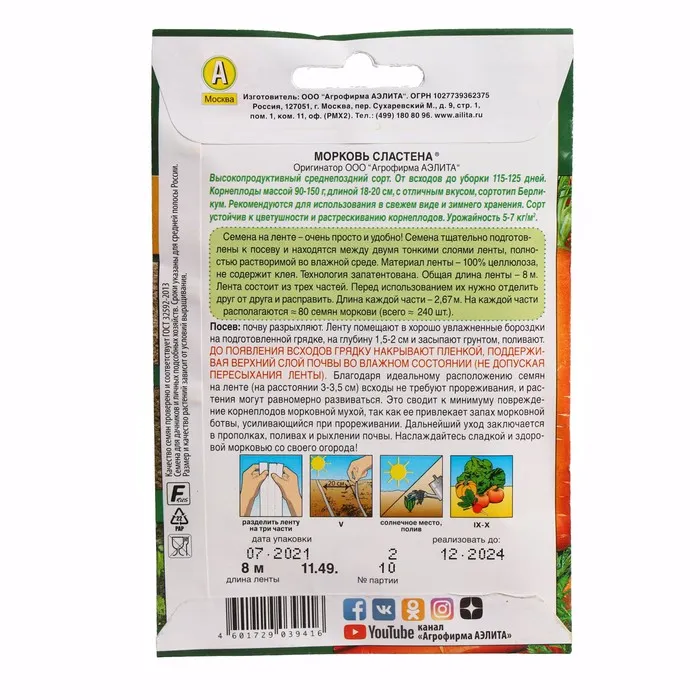 Посев семян в бороздки на глубину 1,5-2,0 см. До появления всходов посевы рекомендуем укрыть пленкой для сохранения оптимальной влажности почвы. С развитием первых двух пар настоящих листочков растения прореживают. Второе прореживание проводят, когда корнеплоды достигнут диаметра 1 см. Возможен подзимний посев (в конце октября – начале ноября) на глубину 3 см. Растениям необходимы своевременные поливы, прополки, рыхления и подкормки.