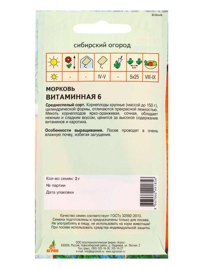 Семена Морковь «Витаминная 6», 2 г, «Агросс» — Характеристики