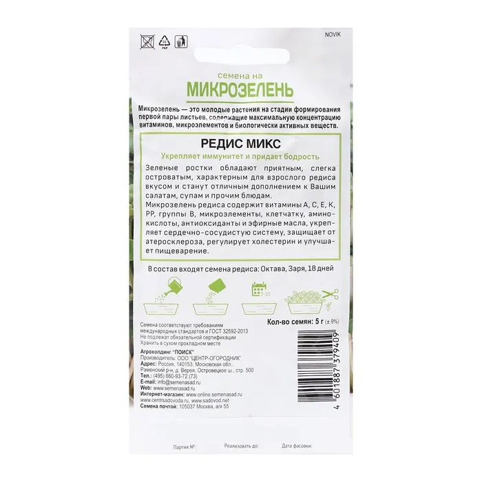 Микрозелень «Редис» — источник витаминов, аминокислот, микроэлементов, эфирных масел, клетчатки.