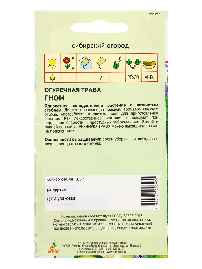 Семена Огуречная трава "Гном" 0,5 г — Характеристики