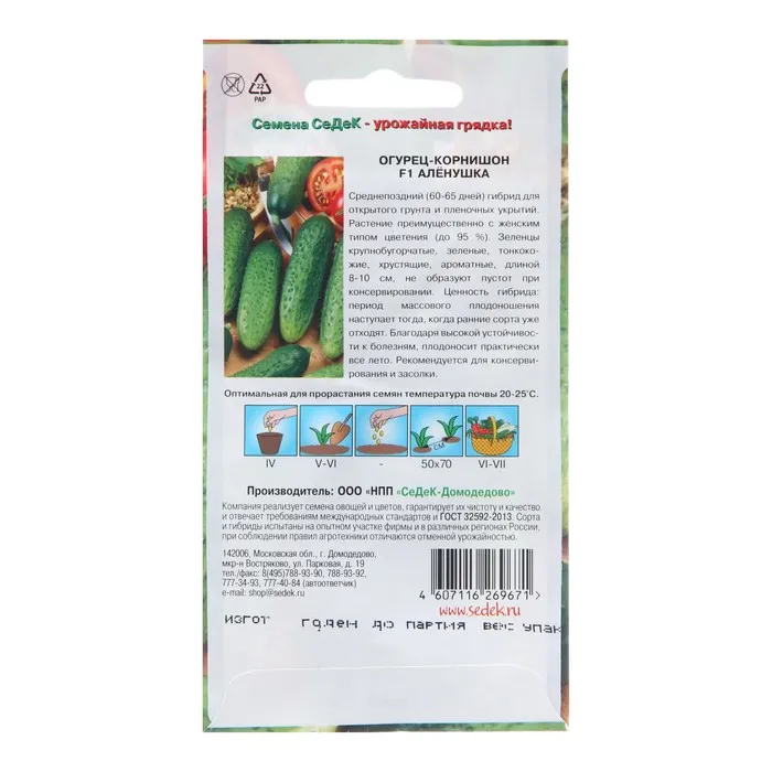 Семена Огурец "Алёнушка F1", 0,3 г — Характеристики