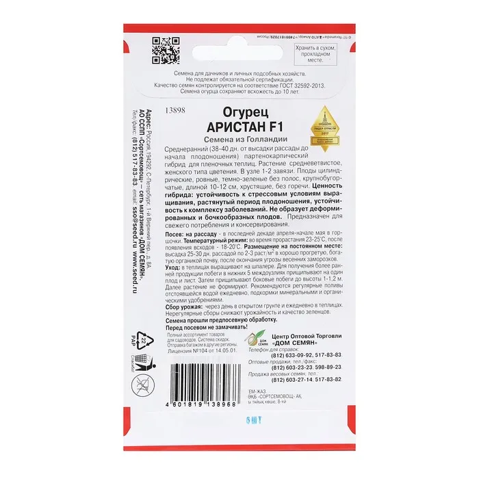 Семена Огурец "Аристан", F1, 6 шт — Характеристики