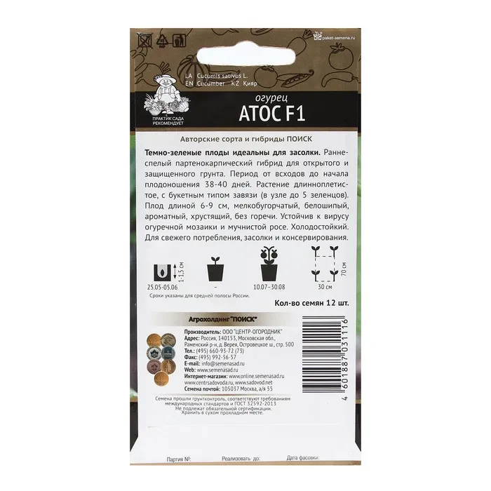 Семена Огурец "Атос F1" 12 шт — Характеристики