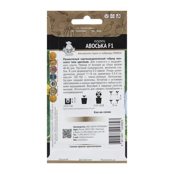 Семена Огурец "Авоська", F1, 12 штт — Характеристики