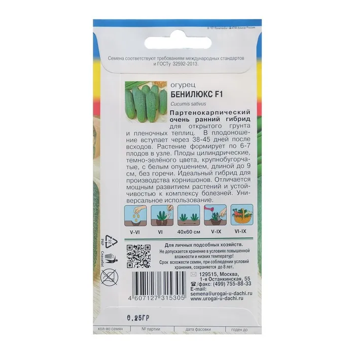 Семена Огурец "Бенилюкс F1 (тип Герман)", 0,25 г — Характеристики