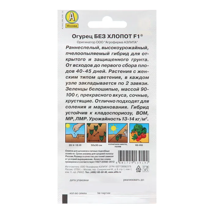 Семена Огурец Без хлопот F1 ® Парт Ц/П 10шт — Характеристики