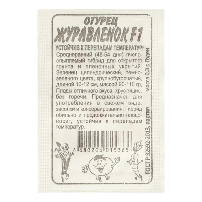 Среднеранний пчелоопыляемый высокоурожайный гибрид для открытого и защищенного грунта. В плодоношение вступает через 51 день после появления всходов. Плоды зеленые, длиной 8-10 см, черношипые. Растение преимущественно женского типа цветения. Назначение гибрида универсальное: для свежего потребления и консервирования. Выращивают прямым посевом семян в грунт и рассадным способом. Семена в открытый грунт высевают, когда почва прогреется до 15-20°С днем и не ниже 8°С ночью. Бороздки или лунки поливают, заделывают в них семена на глубину 1,5-2,0 см и накрывают пленкой. В остекленные или пленочные теплицы, тоннели с начала мая высевают семена или с середины мая высаживают 20-25-дневную рассаду, имеющую 3-5 настоящих листьев. Схема посадки 70х40 см. Растение прищипывают над 5-7 листом. Плоды формируются на боковых побегах.