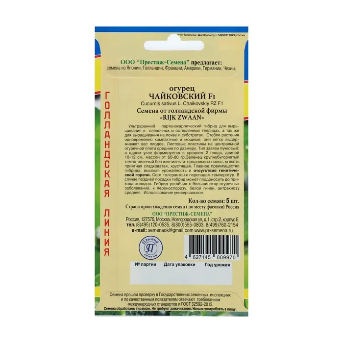 Ультраранний, партенокарпический гибрид для выращивания в пленочных и остекленных теплицах, а так же для выращивания на почве и субстратах. Стебли растения одновременно компактные и мощные: они легко выдерживают вес плодов. Листовые пластины на центральной огуречной плети средние по размеру. Тип завязи пучковый: в одной точке формируется в среднем 2 плода. Зеленец темно-зеленый без продольных полос, мякоть приятная сладковатая, хрустящая, длина достигает 10–12 см, вес от 60 до 80 г. Главное преимущество гибрида, высокая урожайность и отсутствие генетической горечи. Сорт толерантен к перепадам температур. В случае поздней посадки гибрид может плодоносить до прихода холодов. Гибрид устойчив к большинству огуречных заболеваний, к пероноспорозу, белой гнили, антракнозу средняя. Использование универсальное.