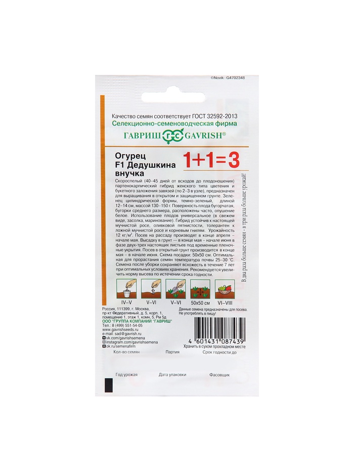 Высадку производить под непостоянное укрытие в фазе 2-3 подлинных листьев. Как и другим сортам, огурцам Дедушкина внучка F1 нужен умеренный полив, поддержание теплового режима и влажности, подкормка минеральными удобрениями, в парниках нужно производить проветривания.