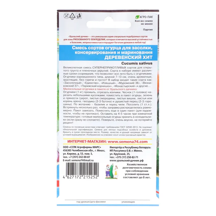 Семена Огурец "Деревенский хит Смесь сортов для засолки и консервирования", 12 шт — Характеристики