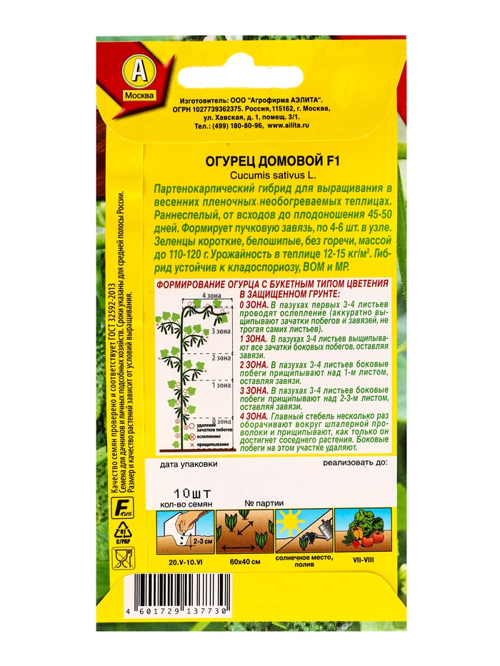 Семена Огурец «Домовой», F1, партенокарпический, 10 шт., «Агрофирма АЭЛИТА» — Характеристики