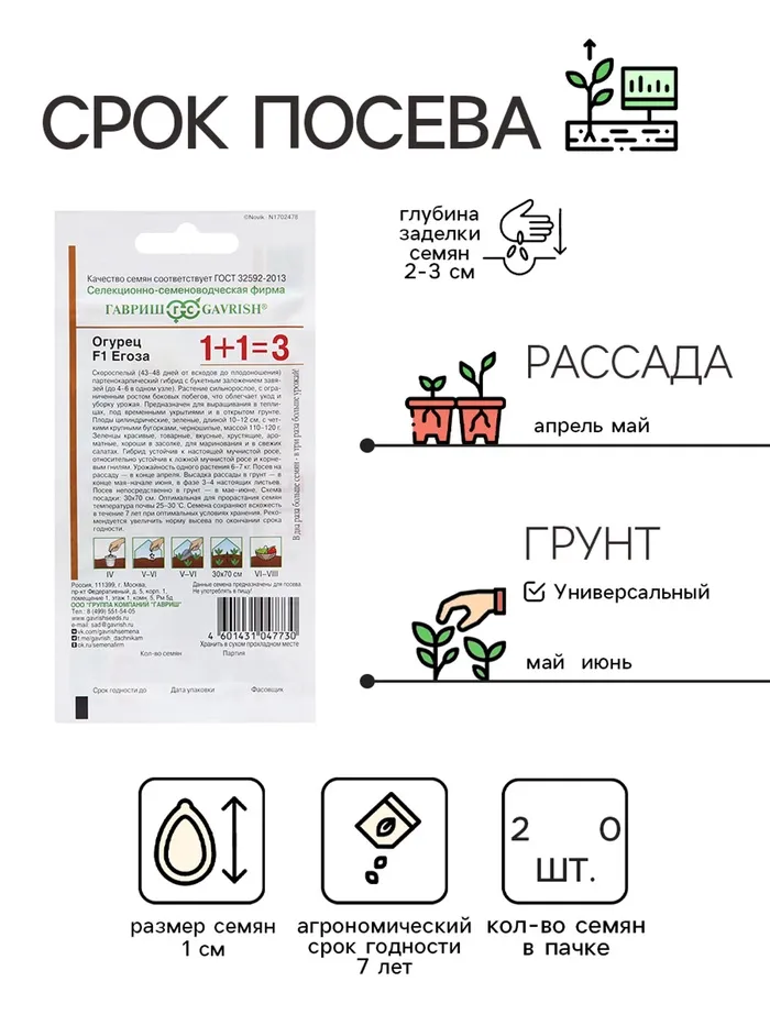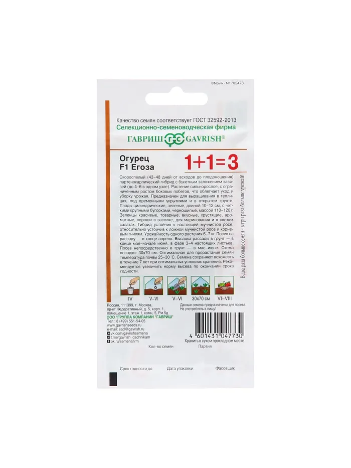 Семена Огурец "Егоза", F1, серия 1 + 1 20 шт. — Характеристики