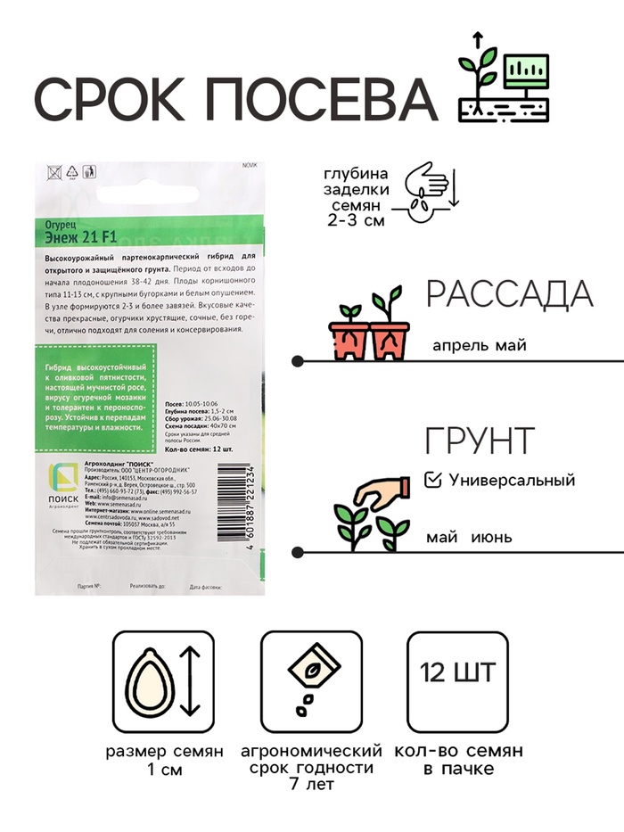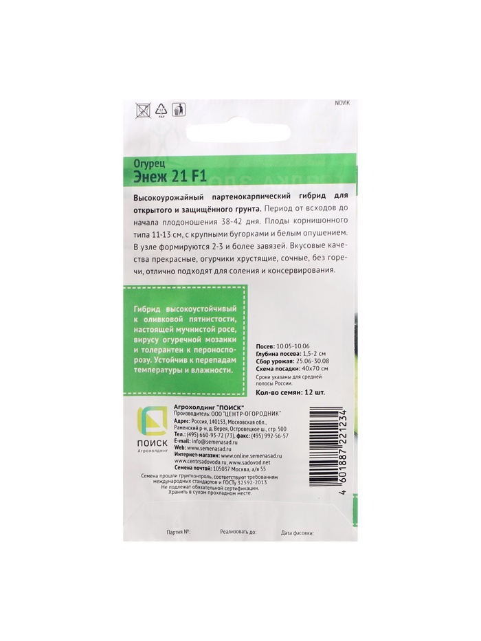 Семена Огурец "Энеж 21", F1, 12 шт — Характеристики