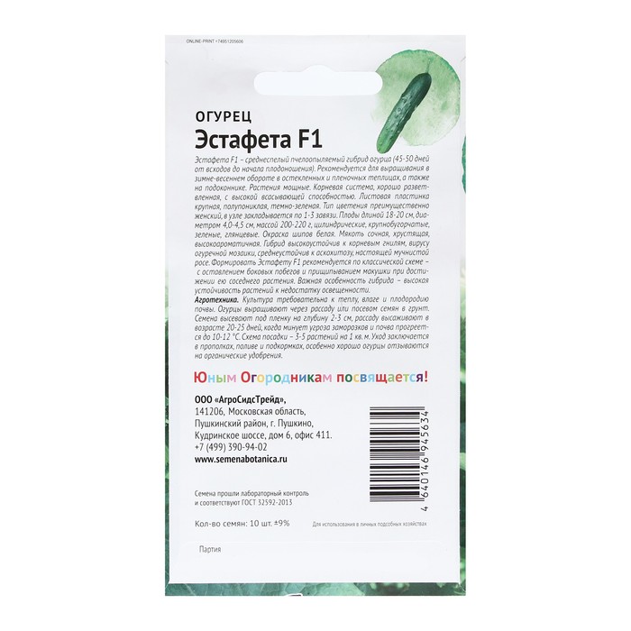 Семена Огурец "ЭСТАФЕТА", "Детская грядка",10 шт — Характеристики