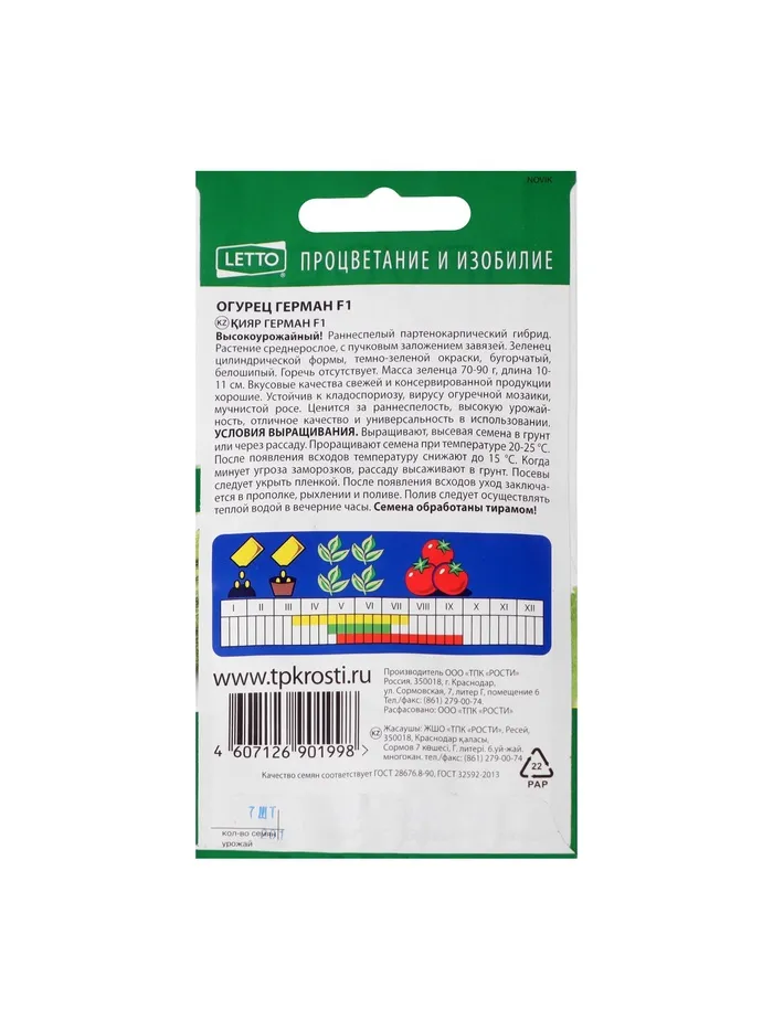 Семена Огурец Герман F1 самоопыляемый, 7 шт — Характеристики