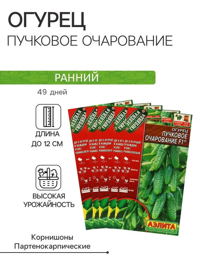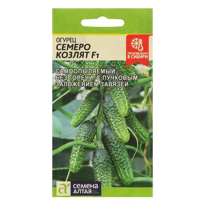 Скороспелый (42-45 дней от посева до плодоношения) пчелоопыляемый гибрид, предназначен для выращивания в открытом грунте и под временными пленочными укрытиями. Растение сильнорослое, длина главного стебля - 140-190 см. Зеленец овально-цилиндрический, зеленый с размытыми светлыми полосами до 1/3 длины, крупнобугорчатый с редким расположением бугорков. Опушение сложное, черное. Длина плода 9-12 см, масса 80-95 г. Мякоть хрустящая, без горечи. Характеризуется комплексной устойчивостью к болезням. Посев на рассаду в начале мая. Высадка в грунт в конце мая - начале июня в фазе двух-трех настоящих листьев. Посев в открытый грунт проводится в конце мая - начале июня. Схема посадки 40х40 см.