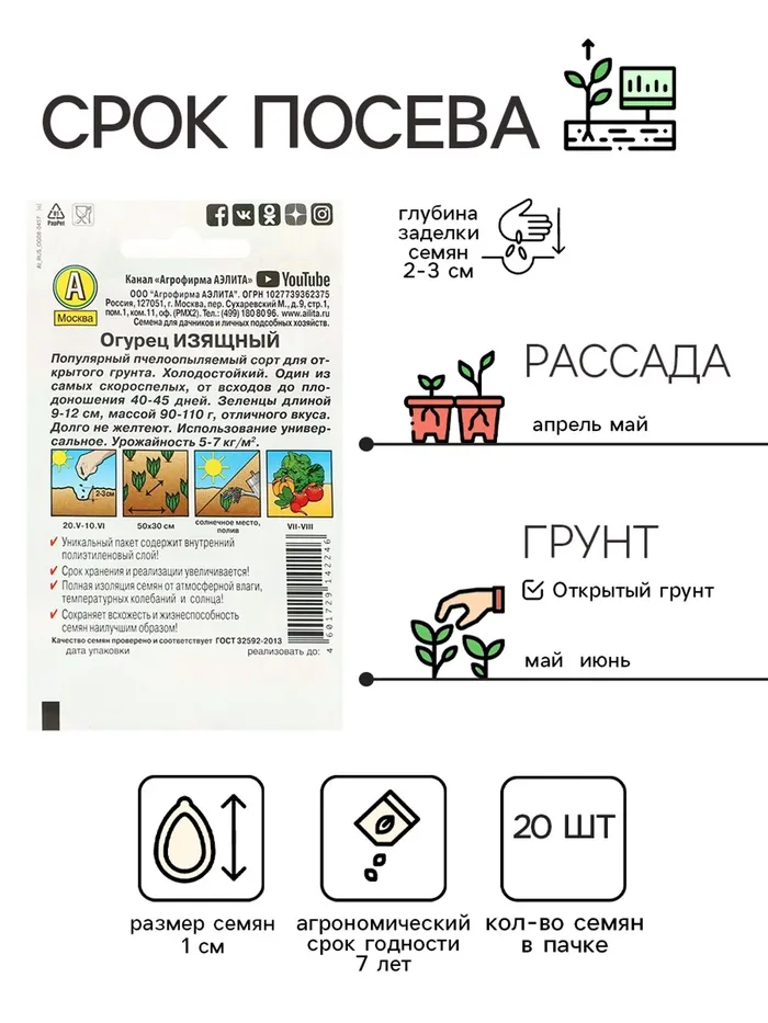 Семена Огурец "Изящный" "Лидер", 20 шт, — Характеристики